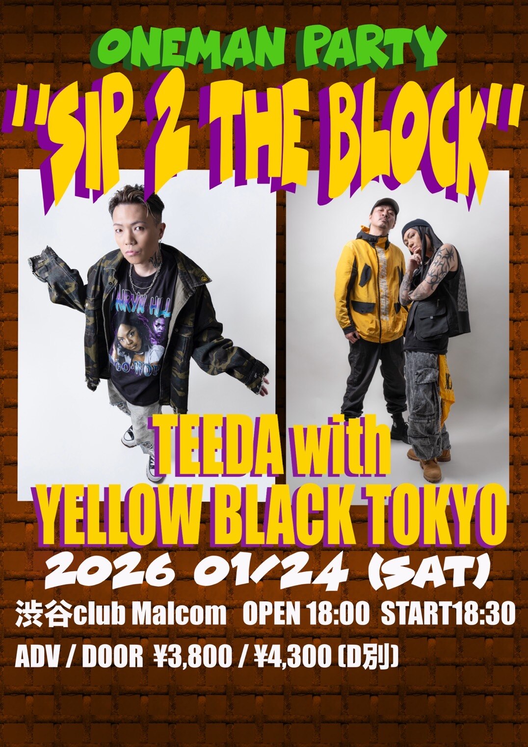 TEEDA ONEMAN PARTY「Sip 2 The Block」TEEDA with YELLOW BLACK TOKYO開催決定!